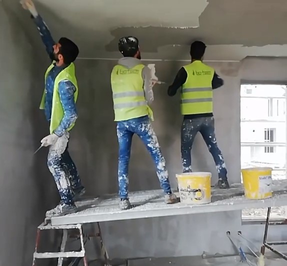 İnce Sıva : Kaba sıva işleminden sonra, cepheye uygulanacak olan son katman işlemleri için daha ince bir sıva uygulaması yapıldı.